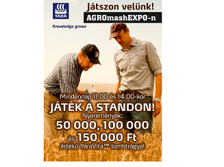 A standunkon nemcsak új és régi termékekkel várjuk a látogatókat, de igen komoly nyereményekért cserébe naponta kétszer játékra is invitálunk mindenkit! 50.000, 100.000 és 150.000 Ft értékben YaraVitaTM terméket nyerhetnek a szerencsés érdeklődők!
